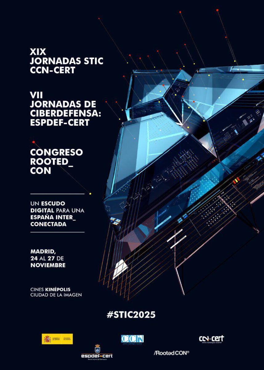 Como novedad, el día 24 de noviembre tendrá lugar una edición especial del Congreso RootedCON como antesala a las Jornadas STIC2025. Este encuentro estará dedicado a sesiones formativas y prácticas diseñadas para ofrecer aprendizaje técnico centrado en amenazas emergentes y herramientas de defensa avanzadas, especialmente orientado a perfiles técnicos y miembros de la comunidad especializada.