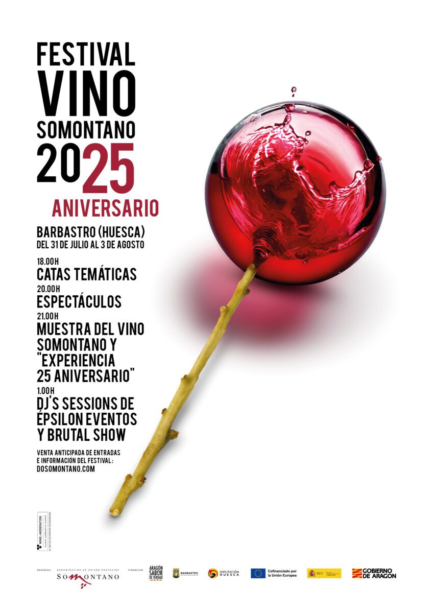 El Festival Vino Somontano cumple veinticinco años y lo celebrará del 31 de julio al 3 de agosto en una edición especial que conmemora esta histórica cita. La programación incluye cinco estrellas Michelín y el Maestro Chocolatero de España 2023 en la «Experiencia 25 Aniversario», junto a veintiún restaurantes extraordinarios en la Muestra Gastronómica y tres sesiones DJ nocturnas.