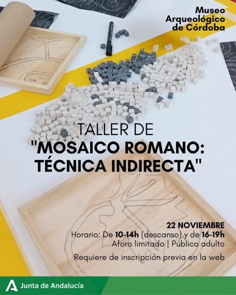 El Museo Arqueológico de Córdoba abre sus puertas este viernes 22 de noviembre para ofrecer una experiencia única de aprendizaje sobre el arte musivario romano. El taller «Mosaico romano: técnica indirecta» permitirá a los participantes descubrir de primera mano cómo se elaboraban los grandes mosaicos de la antigüedad.