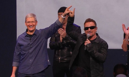 U2 fue la sorpresa en la última conferencia de la empresa Apple. El gigante tecnológico y los irlandeses se unían en el mayor lanzamiento digital realizado hasta la fecha de un álbum. Songs of Innocence se descargó de forma automática y gratuita en los dispositivos de los 500 millones de clientes de iTunes sin el permiso de los éstos. De tal forma, la librería musical de cada usuario contenía el nuevo trabajo de los de Bono. Ante la avalancha de críticas sobre la falta de privacidad, Apple habilitó una página web donde se podría suprimir el álbum.