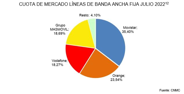 El 77,2% del total de líneas se concentra en los tres principales operadores, Movistar, Orange (incluido Jazztel) y Vodafone (incluido Ono).