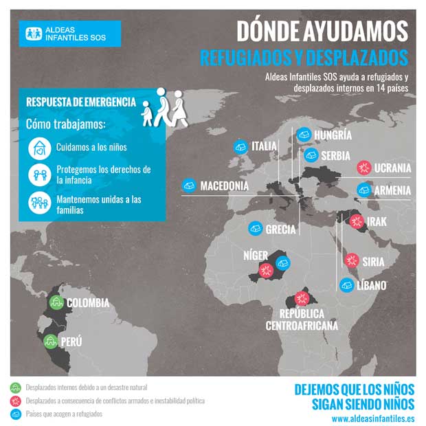 El próximo martes, 20 de junio, se celebra el Día Mundial del Refugiado y Aldeas Infantiles SOS recuerda que una de cada cuatro personas llegadas a Europa entre enero y marzo de 2017 era un niño. La crisis de asilo y refugio que afronta Europa tiene en los niños a sus víctimas más vulnerables, en especial a aquellos que viajan solos y se enfrentan entre otros peligros a la explotación y la trata de personas. La organización ayuda a refugiados y desplazados internos en 14 países, entre ellos Grecia e Italia, puntos de entrada a Europa.
