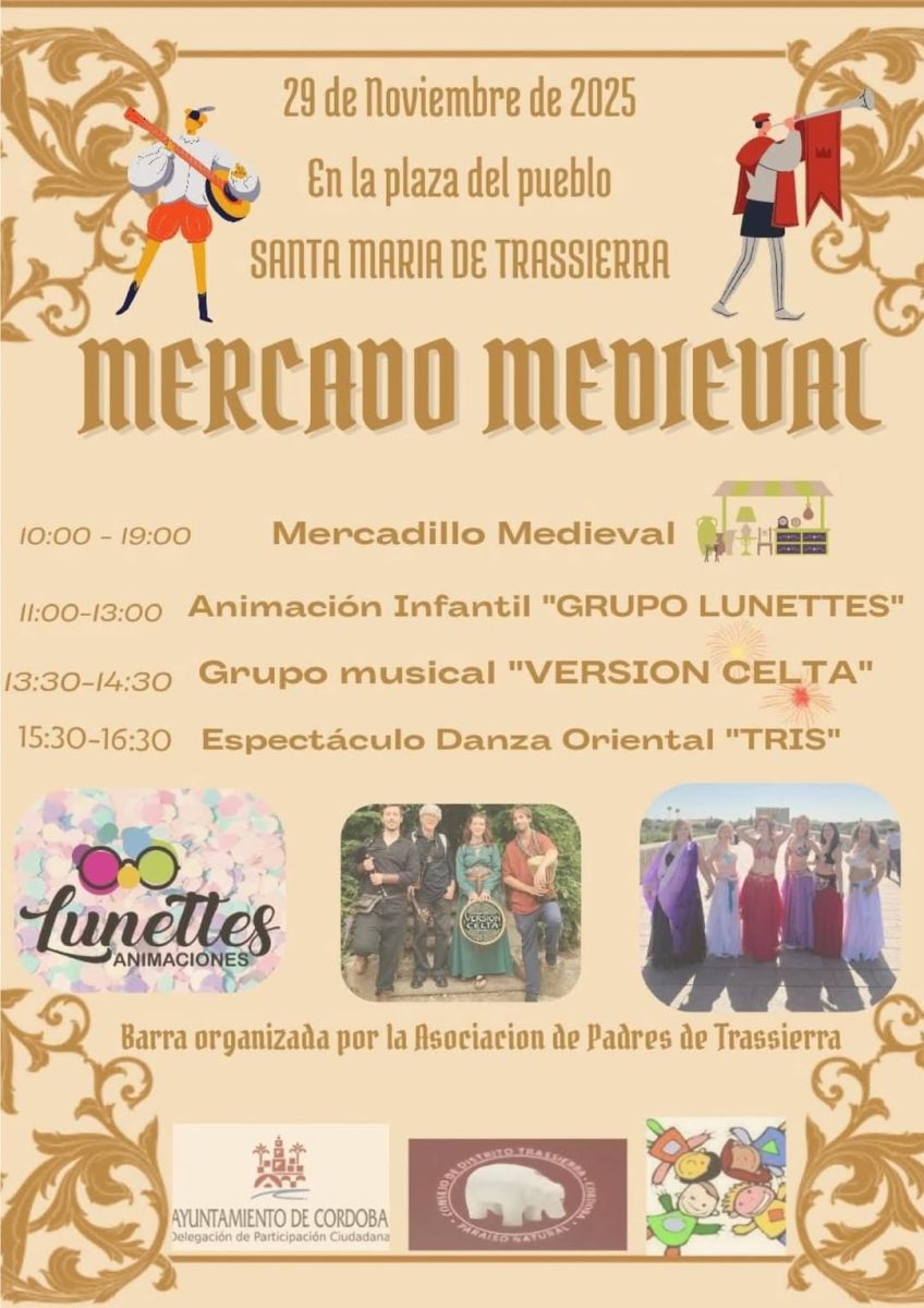 El barrio cordobés de Santa María de Trassierra se prepara para vivir una jornada de ambiente medieval el próximo 29 de noviembre en la plaza del pueblo. La Asociación de Padres de Trassierra, en colaboración con el Ayuntamiento de Córdoba a través de su Delegación de Participación Ciudadana, organiza esta cita que combinará artesanía, música y espectáculos para todos los públicos.